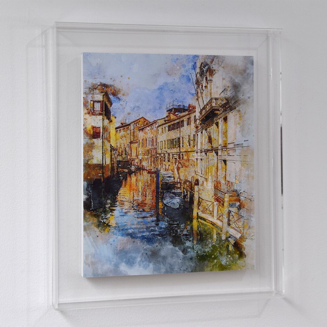 ◇アクリル製の透明な額 prèdoux®は、キャンバス木枠の作品、木製パネルの作品、写真、ポスター、版画などの薄い作品の浮かし貼りなどに使用できます。